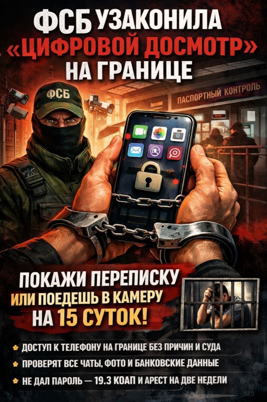 В ФСБ заявляют, что это нужно для борьбы с «экстремизмом и пропагандой». На деле это означает, что любой прапорщик на границе получает доступ к вашей жизни, перепискам, банковским приложениям и фото.
